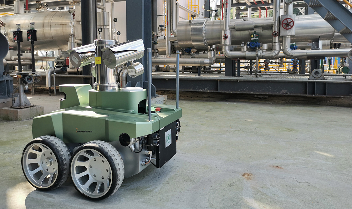 SHIR-3000EX防爆型輪式巡檢機(jī)器人滿足Ex d e ib mb IIB T4 Gb防爆要求,滿足油氣行業(yè)場景應(yīng)用要求,融合了自主無軌導(dǎo)航定位技術(shù)、非接觸檢測技術(shù)、多傳感器融合、后臺大數(shù)據(jù)分析等技術(shù),針對油氣廠不同表計(jì)讀數(shù)、開關(guān)位置、設(shè)備溫度、氣體泄露情況等狀態(tài)進(jìn)行巡檢,巡檢數(shù)據(jù)實(shí)時(shí)上傳。通過后臺大數(shù)據(jù)平臺分析和決策,進(jìn)行預(yù)測性維護(hù),減少因設(shè)備故障造成的維護(hù)和維修成本。利用機(jī)器人巡檢,能有效降低巡檢工作強(qiáng)度,提高工作效率、巡檢質(zhì)量和安全性,并能將巡檢數(shù)據(jù)結(jié)構(gòu)化存儲和分析,有效排除安全隱患,有力保障油氣廠區(qū)的生產(chǎn)與運(yùn)營安全。