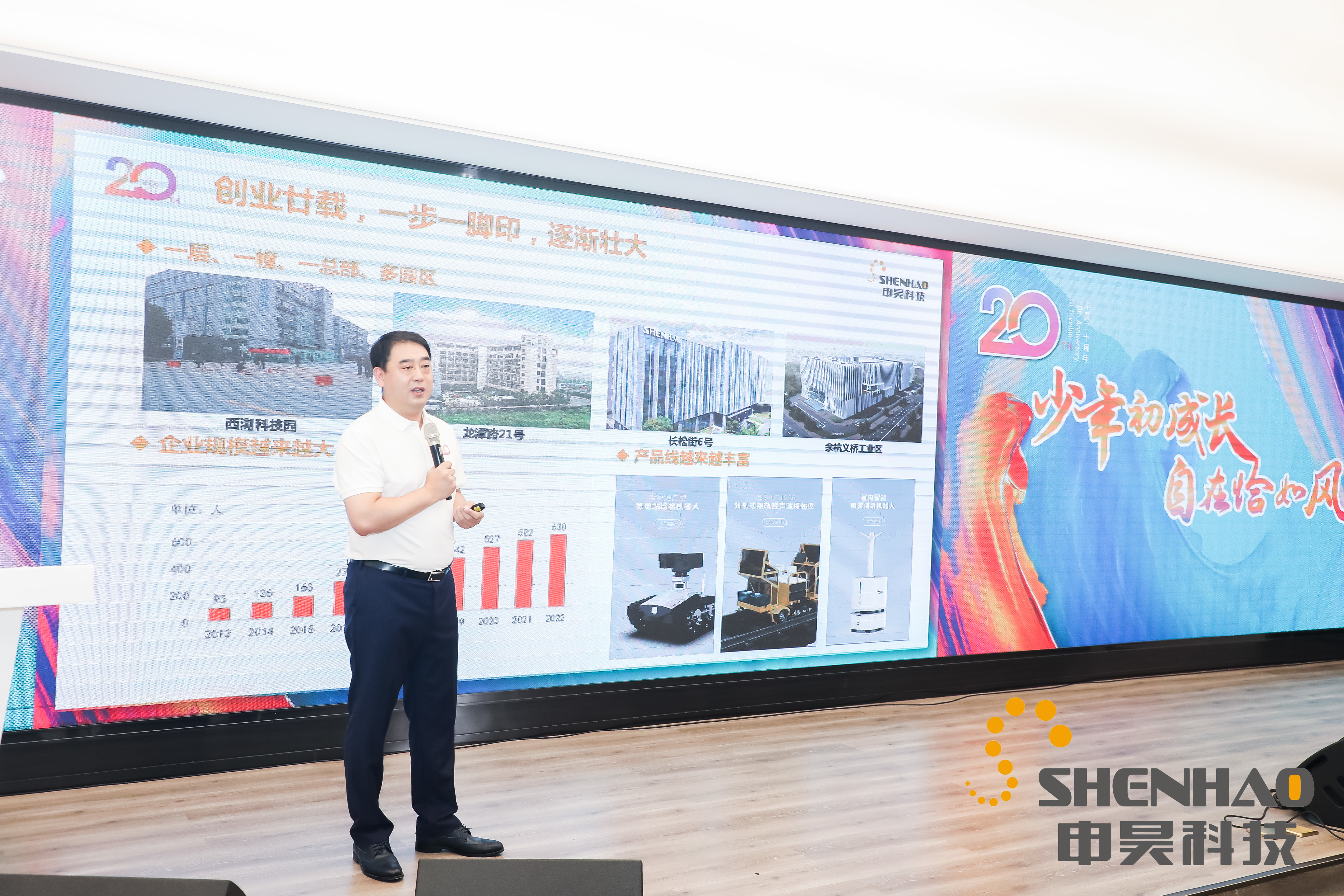陳如申董事長發(fā)表致辭,他表示,申昊科技創(chuàng)業(yè)廿載,跟隨國家的路線,堅守國家發(fā)展戰(zhàn)略規(guī)劃,一步一個腳印,逐步壯大,從最初的電動車檢測,到電力固定端檢測;再到室外、室內(nèi)的電力、石油化工巡檢機器人;拓展到軌道交通領(lǐng)域的檢測線路的機器人、檢測車底的機器人、檢測剛性接觸網(wǎng)的機器人;發(fā)展至今,產(chǎn)品線正在向著企業(yè)戰(zhàn)略“海陸空隧”各個領(lǐng)域突破。產(chǎn)品線越來越豐富的同時,企業(yè)規(guī)模也在不斷發(fā)展壯大。
