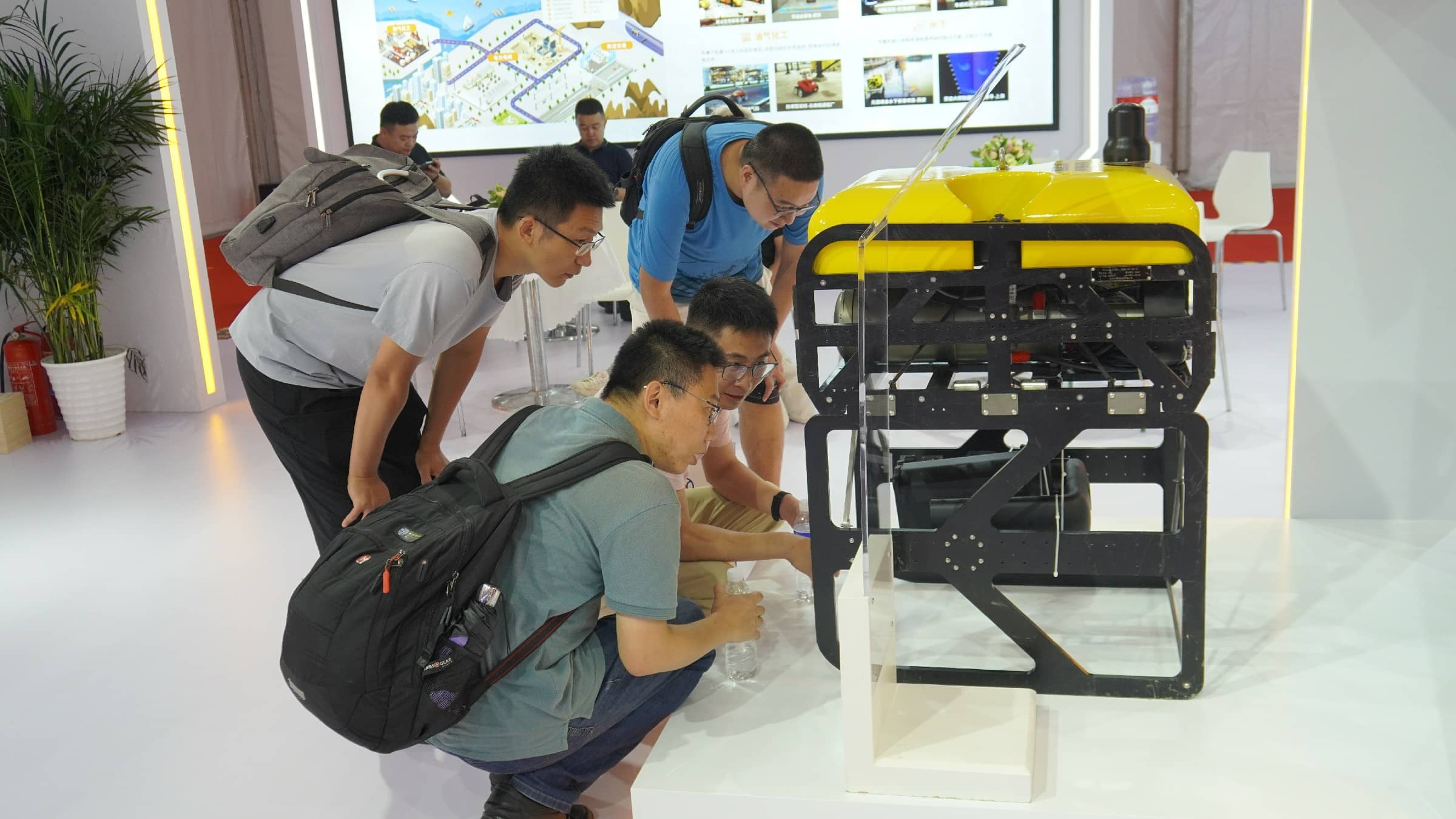 申昊科技展示的申龍一號(hào)水下機(jī)器人是展臺(tái)亮點(diǎn)之一。公司以“海陸空隧”戰(zhàn)略目標(biāo),向海底世界進(jìn)軍。該機(jī)器人負(fù)載能力強(qiáng),適合搭載水下作業(yè)機(jī)械手進(jìn)行救助打撈工作。其強(qiáng)大的運(yùn)動(dòng)能力可以在作業(yè)水域快速運(yùn)輸緊急消防物資;其在線圖像增強(qiáng)和實(shí)時(shí)目標(biāo)識(shí)別攝像系統(tǒng),可以更加清晰的獲取水下影像,方便進(jìn)行監(jiān)測(cè)和圈定有效目標(biāo)物。吸引了眾多觀眾興趣和咨詢。