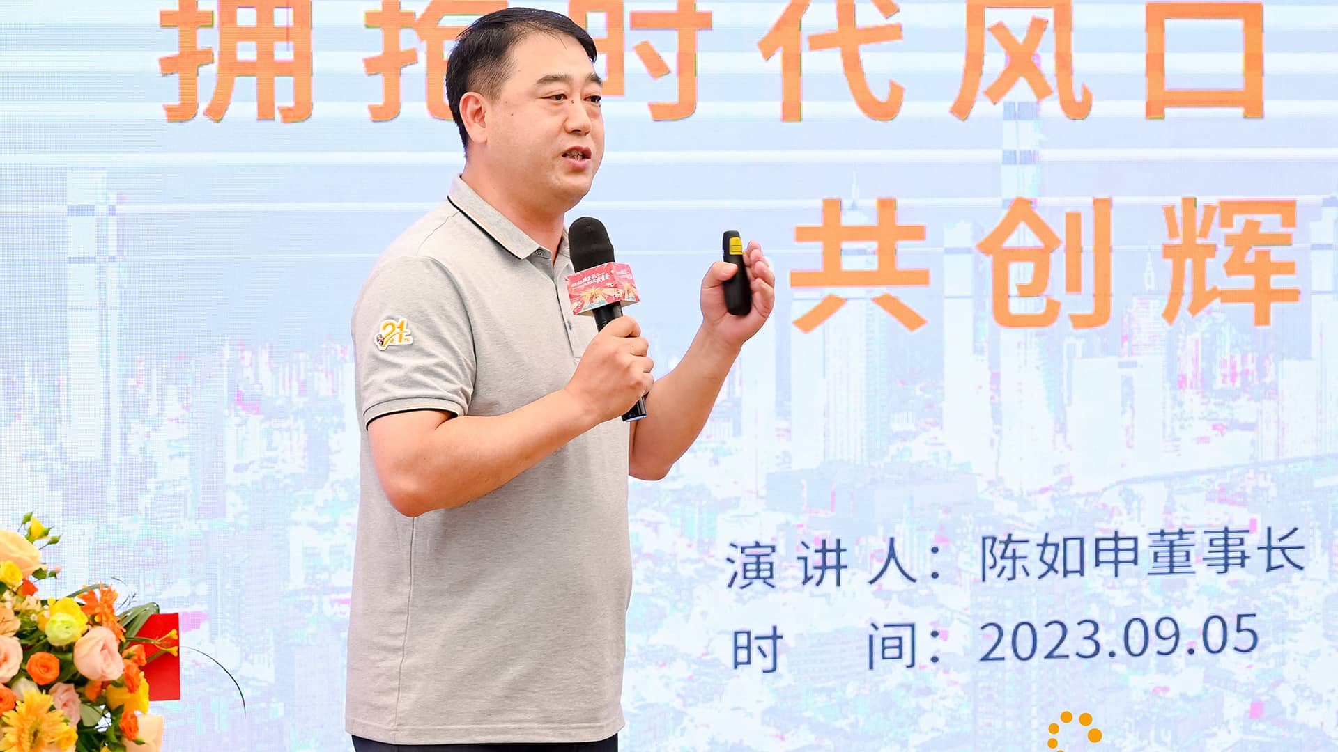 在慶典儀式上,陳如申董事長(zhǎng)發(fā)表了以“擁抱時(shí)代風(fēng)口,共創(chuàng)輝煌未來(lái)”為主題的重要致辭。